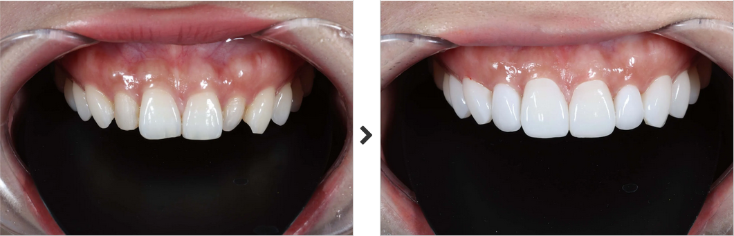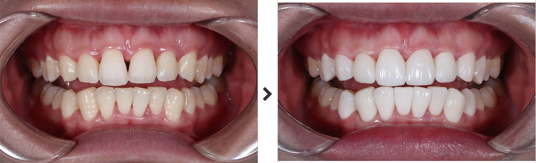 歯を削らず2回の通院で美しく輝く白い歯へ
