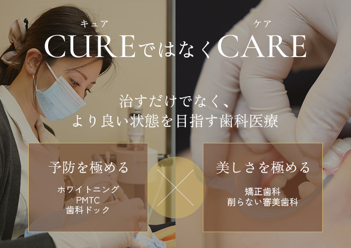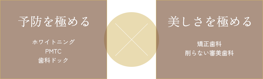 当院では、健康な歯を守るという予防歯科の軸をしっかりと意識した上で、患者様の美しくなりたいという願いを叶えるためにどんなアプローチが必要かを徹底的に考え、患者様一人ひとりに適した治療を提供しております。