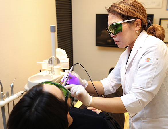 当院が行う歯科用レーザー治療は、ホワイトニングやブラックトライアングル治療、顎関節症治療、睡眠時無呼吸症候群・いびき治療などに使用し、完全無痛治療となっております。