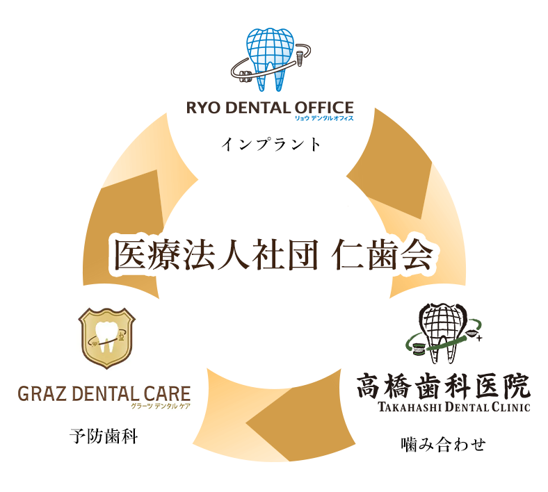 当グループは、リョウデンタルオフィス・高橋歯科医院・グラーツデンタルケアの3院からなる医療法人です。