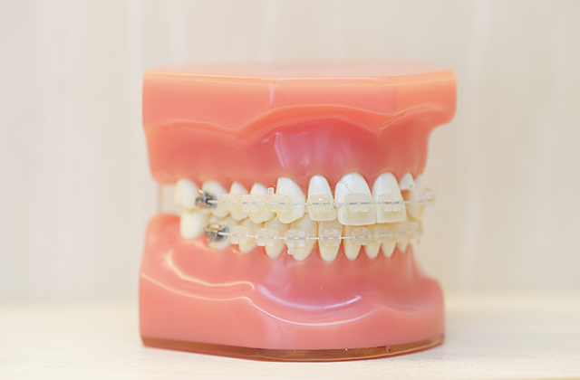 一般的な金属製のワイヤー矯正に比べ、白い装置を使用することで装着時の見た目がより自然で、目立ちにくい点が特徴です。