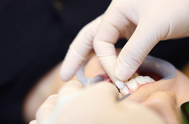健康な天然歯を一切(もしくはほとんど)削ることなく、歯の上に直接高精度なベニアを接着します。